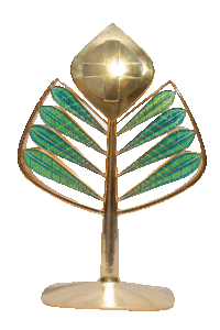 Der Entwurf (1962) dieses besonderen Lebensbaumes stammt von P. Theodor Bogler OSB aus Maria Laach, dessen künstlerisches Wirken von der Stilrichtung des Bauhauses beeinflusst ist. (Der Gründung dieser künstlerischen Initiative vor 100 Jahren wird in diesem Jahr besonders gedacht.) Dieser Entwurf fällt in die Zeit, in der die Hedwigskirche ausgestattet wurde. Wir verwenden diesen Lebensbaum als Monstranz in kostbarer Gestaltung aus Silber, Gold und Emaille. Heute, an Fronleichnam, kommt dieses Gefäß besonders zur Geltung: Wir tragen darin das kostbare Brot des Abendmahles Jesu, die hl. Kommunion, die Eucharistie, wie wir Katholiken sagen. Wir tragen sie in unsere Alltagswelt hinaus und in ihr Christus, Gott und Mensch zugleich, lieben-der Bruder, kostbare Speise, Gabe, die sich mitteilt und von allen geteilt werde will – Leben, das uns atmen läßt.