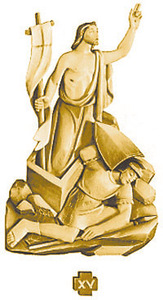 Durch seine Auferstehung zum Herrn bestellt, wirkt Christus in den Herzen der Menschen auch dadurch, dass er auch das Verlangen nach der zukünftigen Welt in ihnen weckt. Diese Gedanken haben einige Künstler veranlasst, in den letzten Jahren Kreuzwege mit 15 Stationen zu schaffen, auch um zu zeigen, dass unser Glaube nicht mit der Grablegung Christi endet, sondern erst durch seine Auferstehung am Ostermorgen seine Erfüllung gefunden hat. Und so haben wir im Jahre 2002 in der Kirche Maria Königin einen geschnitzten Kreuzweg mit 15 Stationen eingeweiht, der inzwischen einen regen Zuspruch gefunden hat, auch wenn wir mit dem Kuriosum leben müssen, dass es im »Gotteslob« noch keine Gebete zur 15. Station gibt.