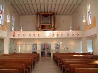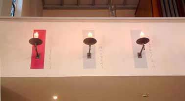 Bei der Renovierung der St.-Hedwig-Kirche im Jahre 2003,wurden 2 Stützpfeiler für die Befestigung der Glastrennwand benötigt. Die Apostel-leuchter mußten neu angeordnet werden. Die 12 Apostel-leuchter befinden sich jetzt an der Orgelbrüstung in der Kirche. Besonders hervor-gehoben werden diese durch die farbliche Hinterlegung . Folgende Apostelnamen wurden neben die Kerzenhalter geschrieben: Die Anordnung der Apostelnamen von links nach rechts erfolgte nach der Aufzählung im Matthäus 10,2/4