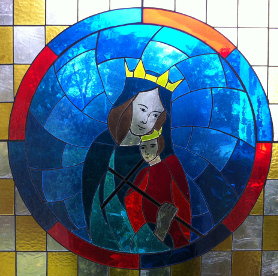 Glasmalerei: Am Eingang zum Pfarrhaus